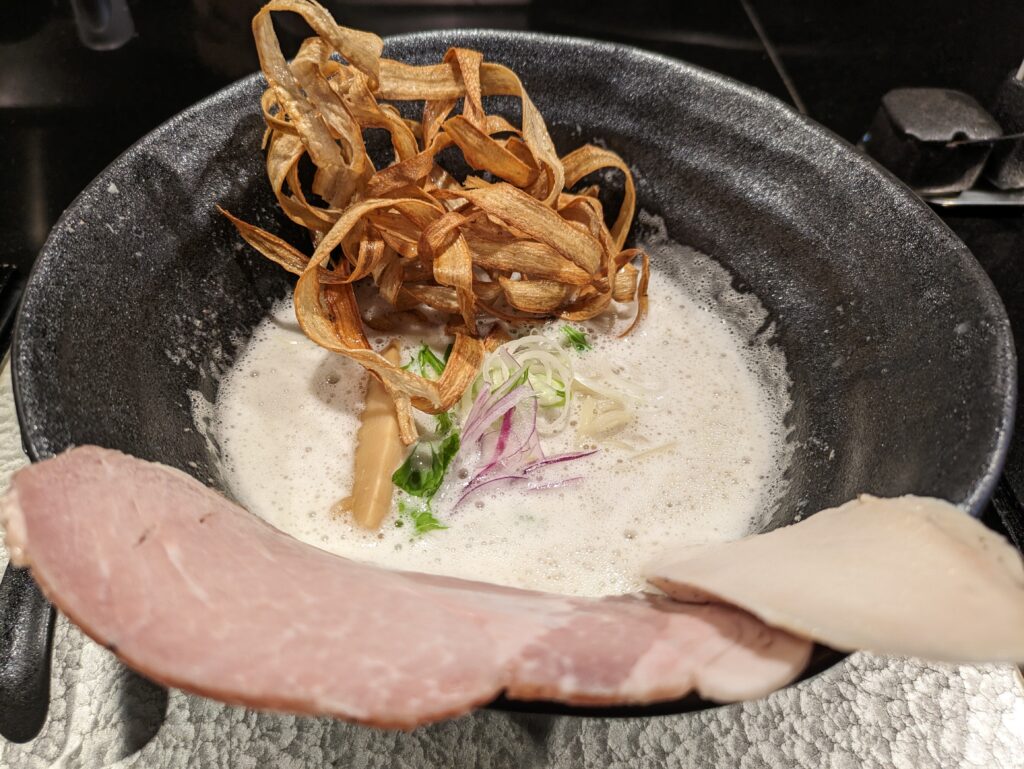 豚骨ほどガンガンに炊きこまれているタイプではなく、あくまでもスープのベースとして使っている感じです。多分肉の部分もスープに使ってますね。