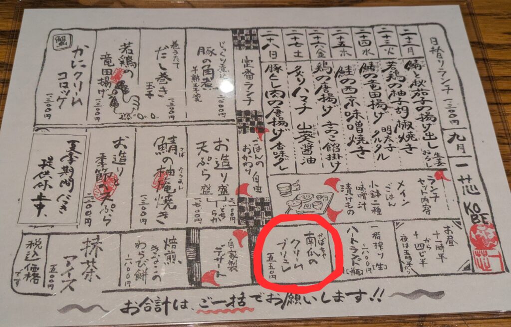 あまりランチやスイーツに関しては公式SNSでの発信がありませんが、期間限定スイーツでないのであれば、三宮方面に出かけるたびに「ごはんや一芯」でランチ+南瓜のクリームブリュレを食べてしまいそうです笑