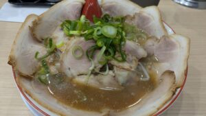 チャーシューラーメンは麺が見えないくらいの量のチャーシューが敷き詰められており、インパクトがすごいです!