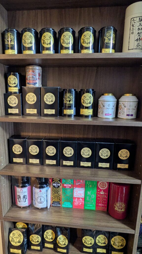 実は以前からマリアージュフレールのティーサロンに行くたびに、「あの紅茶の棚いいよね」という話をしており、ずっと紅茶棚を購入するかどうするか迷っていましたw